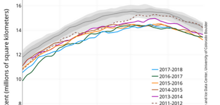 Una concorrenza di condizioni – tra cui le alte temperature dell’aria e degli oceani, insieme alle persistenti tempeste – ha posto le basi per questa drammatica flessione in una regione che finora non era stata una delle principali cause della riduzione complessiva dei ghiacci marini dell’Artico. Mentre questo inverno straordinario è stato caratterizzato da una certa variabilità meteorologica, il riscaldamento di fondo dell’Artico è ciò che fornisce la “spinta in più” per raggiungere questi estremi mai visti prima, dice Walsh.