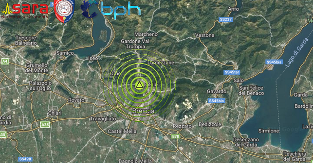 SCOSSA DI TERREMOTO DI Ml 2.9 NELLA ZONA DEL BRESCIANO IN LOMBARDIA