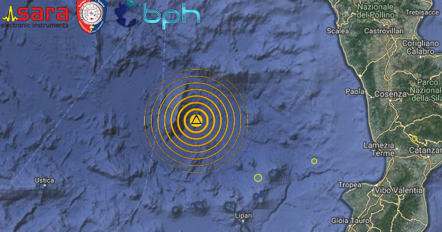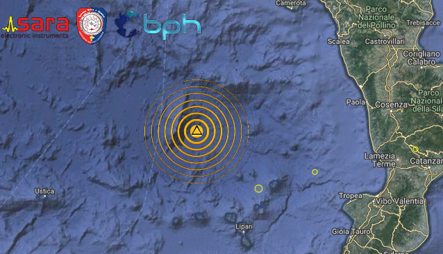 Una scossa di terremoto di magnitudo 3.3 è avvenuta alle ore 16:45:01 italiane nel Mar Tirreno, a nord delle Isole Eolie, nella zona del Vulcano Marsili, con ipocentro in mare alla profondità di 363 km.