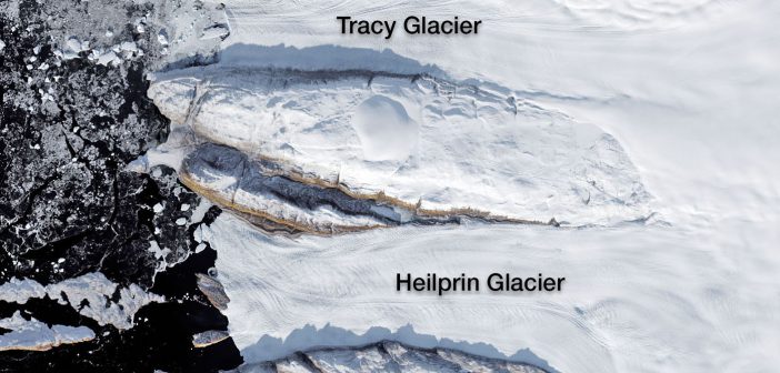 I ghiacciai Tracy e Heilprin furono studiati per la prima volta dagli esploratori nel 1892 e da allora sono stati misurati sporadicamente. Sebbene i ghiacciai contigui siano soggetti allle stesse condizioni meteorologiche e oceaniche, l’Heilprin si è ritirato a monte di 4 chilometri in 125 anni, mentre il Tracy si è ritirato di oltre 15 chilometri. Ciò significa che Tracy sta perdendo ghiaccio quasi quattro volte più velocemente del suo vicino di casa.
