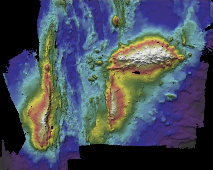 Mappa batimetrica del vulcano sottomarino Gigante, situato sulla dorsale medio-atlantica, che separa le placche nordamericana ed euroasiatica – doc. Instituto Hidrográfico da Marinha Portuguesa.