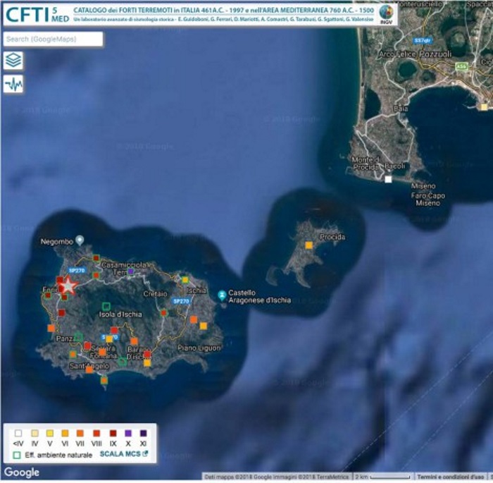 Ancora più distruttivo fu l’evento del 2 febbraio 1828 su cui si hanno notizie precise grazie alla presenza sull’isola del chimico Nicola Covelli che stava svolgendo uno studio sulle acque termali. Covelli descrisse gli effetti del terremoto in due lettere al segretario perpetuo dell’Accademia delle Scienze di Napoli, Teodoro Monticelli, e in una estesa relazione.