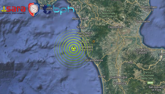 Una scossa di terremoto di magnitudo 2.7 è avvenuta alle ore 07:10:46 italiane nel Mar Tirreno, al largo della costa calabrese Cosentina, con ipocentro in mare alla profondità di 267 km. Questa tipologia di eventi, con elevata profondità ipocentrale e magnitudo non rilevante, non viene avvertita dalla popolazione