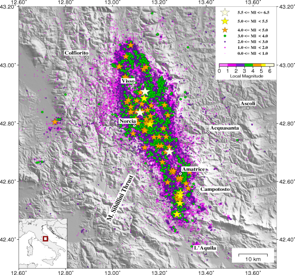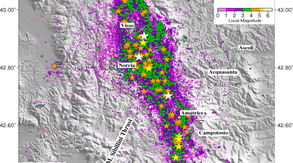 Dei 93.000 terremoti che si sono susseguiti senza tregua a partire da quello di magnitudo 6.0 della sequenza sismica di Amatrice e Norcia, nove hanno avuto magnitudo superiore a 5, fino al terremoto del 30 ottobre 2016 di Norcia di magnitudo 6,5; si sono verificati ben 67 eventi di magnitudo fra 4 e 4,9, 1.142 fra 3 e 3,9. Tutti insieme si sono rivelati un laboratorio unico per conoscere nuovi aspetti e fenomeni inediti.