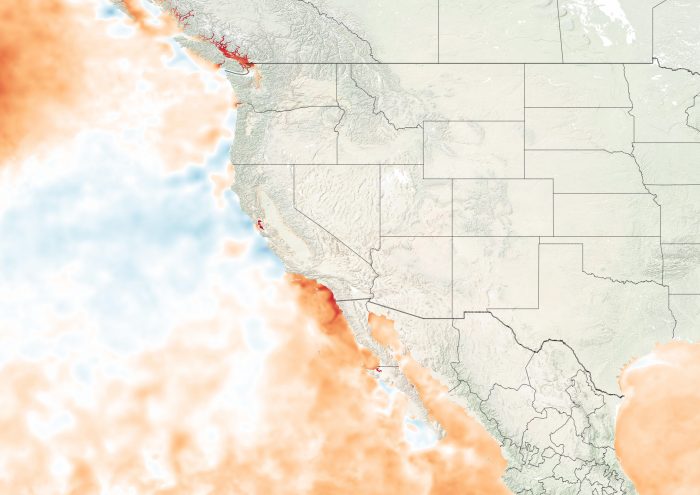 “Il motore principale di queste calde temperature oceaniche è la persistenza di un’alta pressione atmosferica continentale che ha dominato il clima occidentale degli USA”, ha detto Patzert. Ha spiegato che normalmente, l’alta pressione sull’Oceano Pacifico orientale guida venti da nord lungo la costa californiana. Questi venti spingono verso l’alto le acque superficiali costiere, permettendo alle acque fredde dal basso verso la parte superficiale oceanica mantenendo fresca la parte costiera della California.