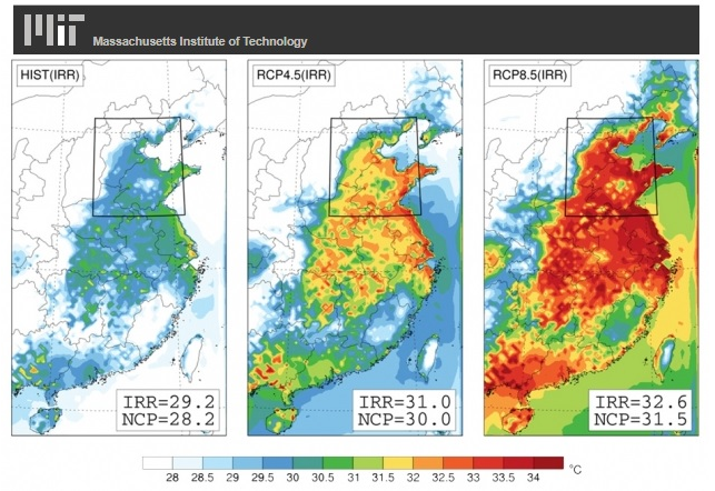 Eltahir conferma: «L’irrigazione esaspera l’impatto dei cambiamenti climatici». secondo i ricercatori, «In effetti, l’effetto combinato, come previsto dai modelli, è un po’ più grande della somma dei singoli impatti dell’irrigazione o dei cambiamenti climatici da soli, per ragioni che richiederanno ulteriori ricerche. Ma la conclusione è che «La linea di base è l’importanza di ridurre le emissioni di gas serra al fine di ridurre la probabilità di tali condizioni estreme. La Cina è attualmente il più grande contributore alle emissioni di gas serra, con implicazioni potenzialmente gravi per la sua popolazione: la continuazione dell’attuale modello di emissioni globali potrebbe limitare l’abitabilità della regione più popolosa del Paese più popoloso sulla Terra».