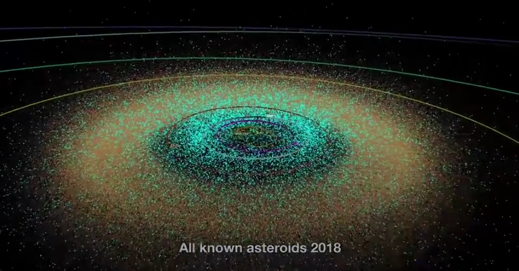 Questa bellissima animazione della Nasa ci rivela per la prima volta la mappa degli asteroidi che orbitano nel nostro Sistema solare. E in funzione del tempo: da quelli osservati e identificati nel 1999 fino al 2018. Quelli più lontani da noi sono indicati in arancione mentre sono blu quelli le cui orbite si avvicinano maggiormente al nostro Pianeta. Sono davvero tantissimi, e vederli tutti insieme mette in effetti in soggezione.