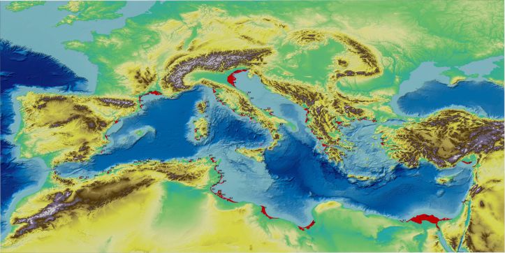 Lungo le coste del Mediterraneo potrebbe scomparire una superficie pari a quasi 5.5 milioni di campi di calcio entro la fine di questo secolo.