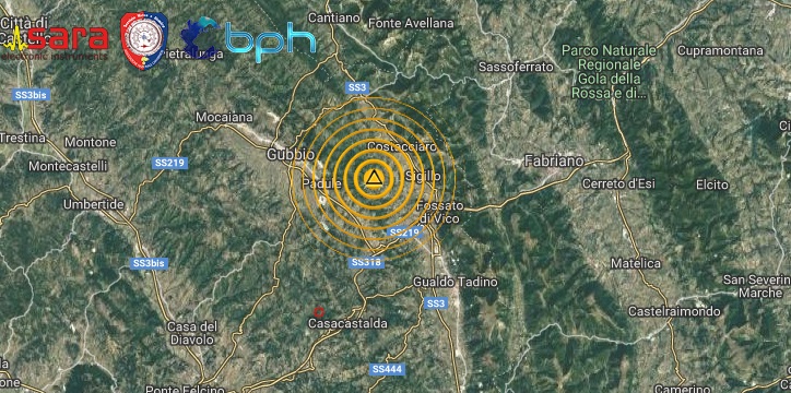 Epicentro nella zona di Costacciaro (PG). Evento avvertito dalla popolazione in diverse zone dell’Umbria e delle Marche pedemontane appenniniche