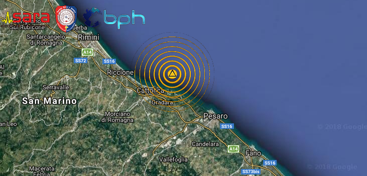 Ipocentro a oltre 33 km di profondità, con epicentro nei pressi della costa di Cattolica (RN). Evento avvertito dalla popolazione