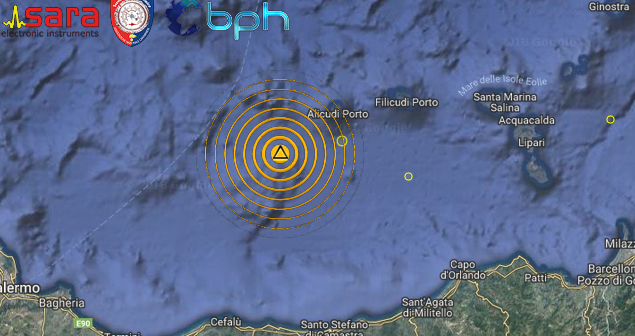 Una scossa di terremoto di magnitudo 3.8 è avvenuta alle ore 13:55:30 italiane nel mar Tirreno meridionale, a sud dell’Arcipelago delle Eolie, con ipocentro  alla profondità di 20,4 km.
