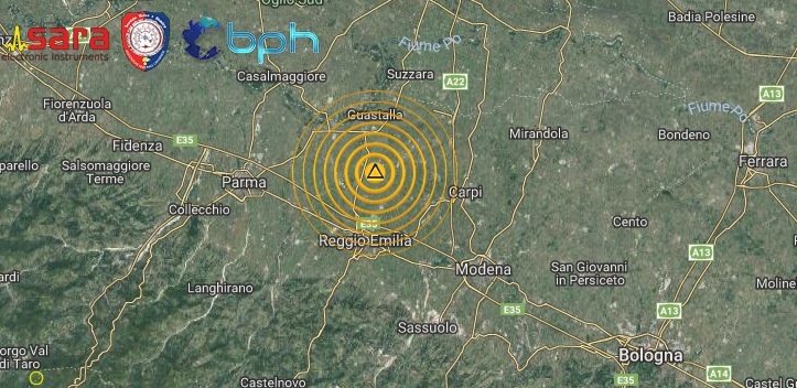Epicentro nella zona di Bagnolo in PIano (RE), evento distintamente avvertito dalla popolazione in molte zone dell’Emilia Romagna