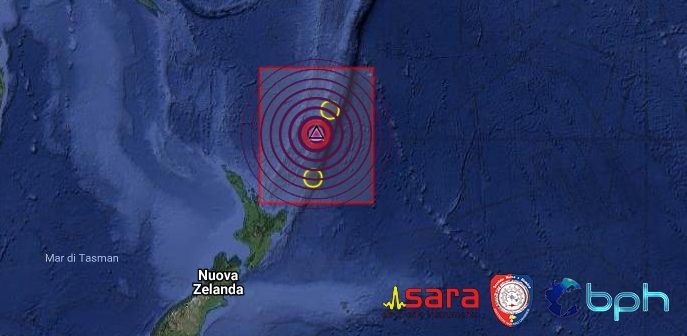 FORTISSIMA SCOSSA DI TERREMOTO DI Mw 6.9 NELLA ZONA DELLE KERMADEC ISLANDS NEL PACIFICO, A NORD EST DELLA NUOVA ZELANDA