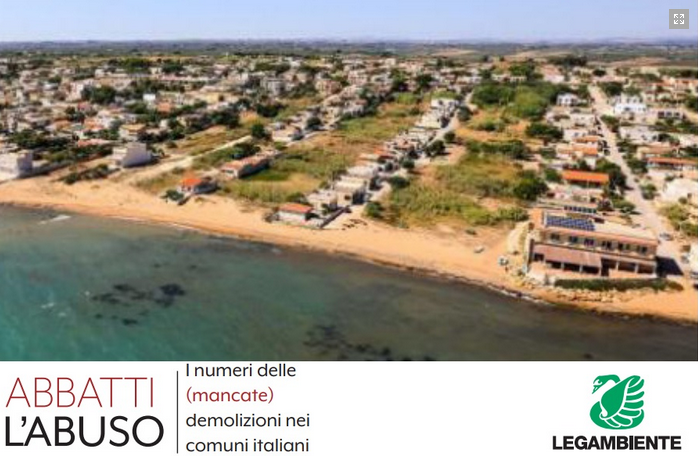 Il dossier “Abbatti l’abuso. I numeri delle (mancate) demolizioni nei comuni italiani” presentato da Legambiente, ricorda che «nulla è più tangibile di una casa. Ancora di più se su quella casa pende da decenni un ordine di demolizione perché costruita abusivamente, magari in una zona di pregio, in un’area protetta o lungo la costa. In Italia gli abbattimenti sono un obbligo previsto dalla legge, ma a quanto pare nella realtà sono poco più di una facoltà per i comuni. Così le demolizioni restano ferme al palo: sono ancora ben saldi alle fondamenta più dell’80% degli immobili che, invece, sarebbero dovuti andare giù negli ultimi quindici anni. Non solo non si demolisce, ma neppure si acquisisce al patrimonio pubblico come prevedrebbe la legge: appena il 3,2% di questi immobili risulta infatti trascritto dai Comuni nei registri immobiliari».