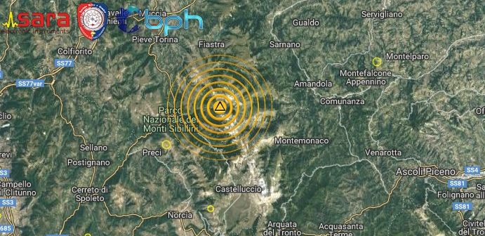Un  terremoto di magnitudo (Ml) 3.6 è avvenuto alle ore 23:57:13 ed è stato localizzato nella zona di Ussita (MC) nelle Marche, con ipocentro alla profondità di 7,1 km.