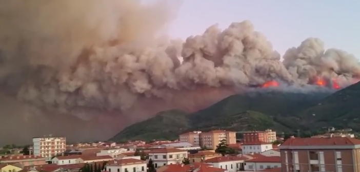 Evacuate dai sindaci molte abitazioni, si attendono i Canadair che da stamattina potranno alzarsi. Quasi certamente doloso e alimentato dal vento fortissimo