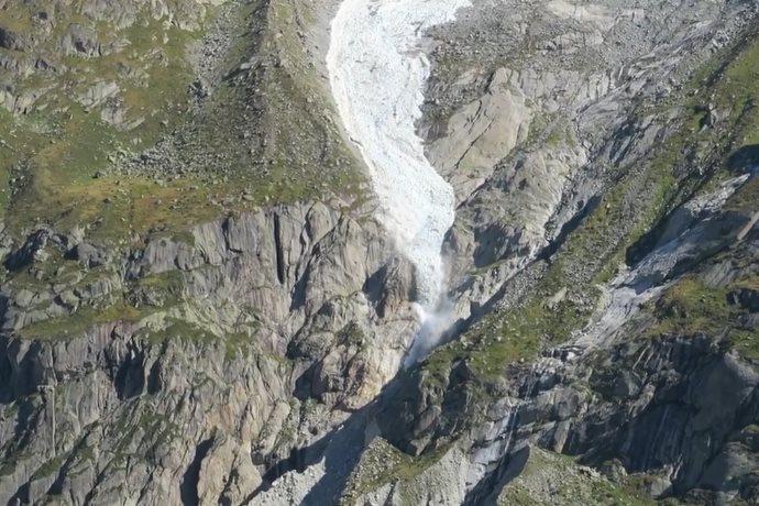 A renderlo noto sulla propria pagina facebook è stata la società svizzera Méteo Mettra. La colata di acqua e ghiaccio, filmata dal dottorando Benjamin Lehmann, poche ore dopo ha raggiunto il ghiacciaio Mer de Glace.