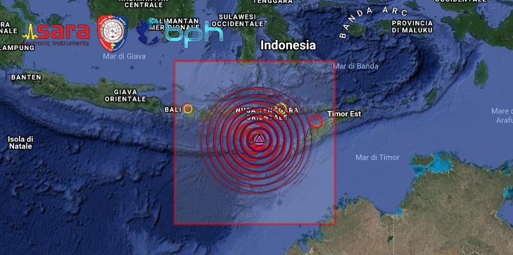 DOPPIA FORTE SCOSSA DI TERREMOTO DI Mw 6.0 E Mw 5.9 A SUD DELL’ISOLA DI SUMBA IN INDONESIA