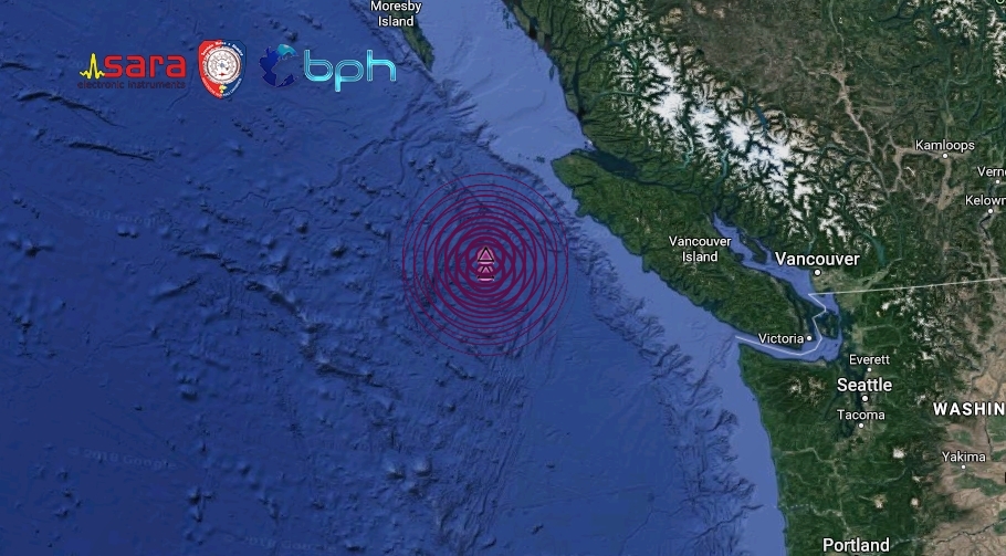 L’epicentro è stato calcolato in mare, 218km a SW della località di Port Hardy in Canada, dove l’evento è stato avvertito distintamente in molte zone della costa. Non è stata diramata allerta tsunami