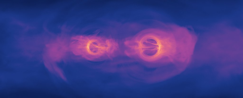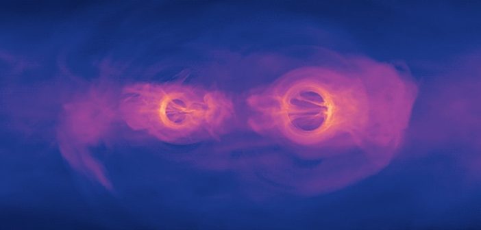 Prima di fondersi, i buchi neri si devono avvicinare, compiendo una danza in cui si “inseguono” reciprocamente in orbite più o meno circolari per un certo periodo di tempo, formando un vero e proprio sistema binario. Dal 2015 i rilevatori di onde gravitazionali hanno potuto evidenziare la fusione di piccoli buchi neri, misurando le onde gravitazionali emesse durante la fusione, ma i rilevatori attuali non possono essere utilizzati per dimostrare la presenza di buchi neri binari supermassicci, cioè coppie di buchi neri enormi al centro delle galassie.