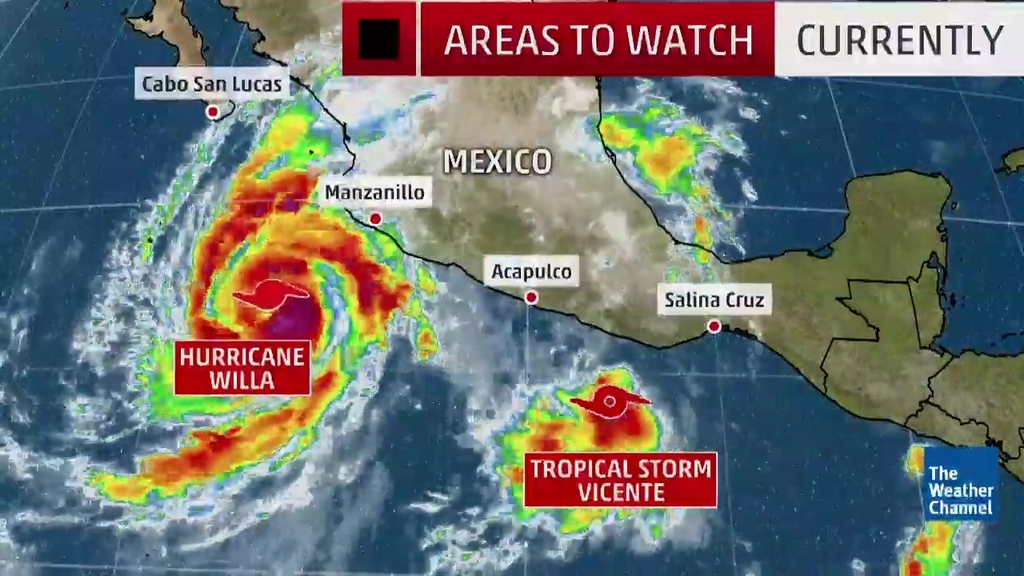 Il National Hurricane Center degli Stati Uniti ha avvertito che Willa potrebbe portare da 15 a 30 pollici di pioggia (fino a 18 pollici in alcuni punti) in alcune zone degli stati di Jalisco, Nayarit e Sinaloa, con inondazioni improvvise e frane nelle aree montuose. Più a sud, la tempesta tropicale Vicente si è indebolita, ma ci si aspetta che possa ancora generare forti piogge e inondazioni su parti del Messico meridionale e sudoccidentale.