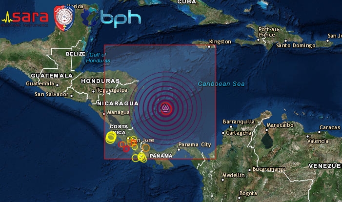 Ipocentro superficiale, epicentro in mare nei pressi dell’Isola di San Andrés. Evento avvertito in maniera forte nell’isola. Non è stata diramata allerta tsunami