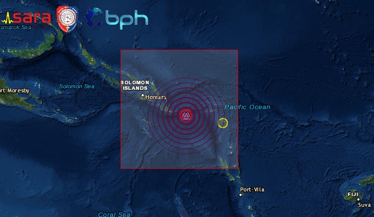 L’epicentro è stato localizzato in mare,132 km a est della località di Kirakira. Non è stata diramata allerta tsunami
