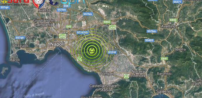 Un terremoto di magnitudo (Md) 2.3 è avvenuto alle ore 16:55:12 è stato localizzato nella zona del Vesuvio in Campania, con ipocentro alla profondità di 1,6 km.