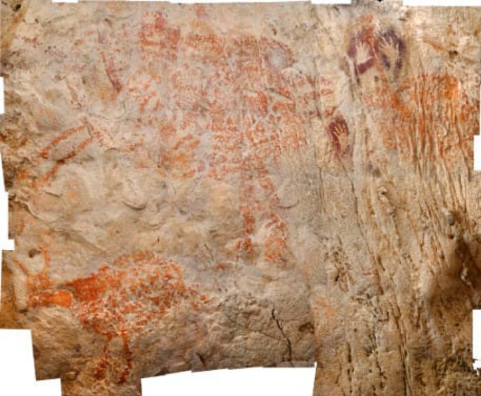 Nella grotta di Lubang Jeriji Saléh – che contiene 20 immagini di animali e umani e circa 300 impronte di mani – hanno in particolare individuato una raffigurazione incompleta di un animale databile ad almeno 40.000 anni fa, due immagini di banteng (Bos javanicus lowi) di 37.200 anni fa e diverse impronte di mani in negativo di datazione più incerta e varia, ma comunque compresa fra un minimo di 23.600 anni fa (l’età delle concrezioni successive alla pittura) e 51.800 anni fa (l’età del substrato).