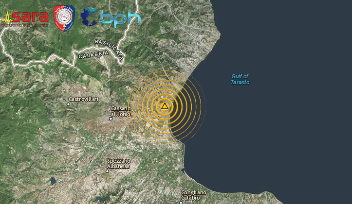 SCOSSA DI TERREMOTO DI Ml 3.1 NELLA NOTTE SULLA COSTA IONICA CALABRESE, IN PROVINCIA DI COSENZA