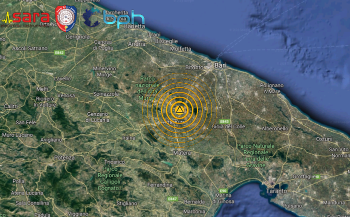 Un terremoto di magnitudo (Ml) 3.5 è avvenuto alle ore 13:45:54 ed è stato localizzato nella zona di Altamura, in provincia di Bari, in Puglia, con ipocentro alla profondità di 37,7 km.