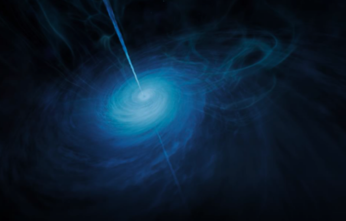 J043947.08+163415.7 – così è stato battezzato l’oggetto – è un quasar, cioè una sorgente di radiazione elettromagnetica luminosa quanto 600.000 miliardi di stelle come il Sole; la radiazione è prodotta dalla materia che viene inghiottita a un ritmo vertiginoso da un buco nero al centro di una galassia.