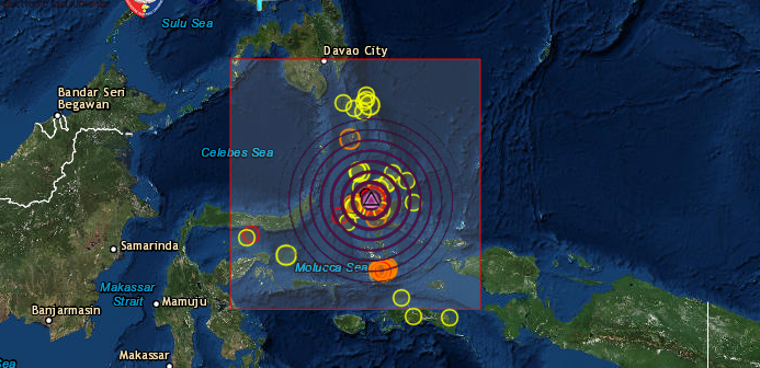 L’epicentro è stato localizzato in mare, a ovest dell’arcipelago, 151km a WNW della località di Tobelo. Non è stata diramata allerta tsunami