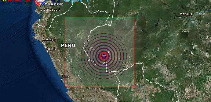 Una fortissima scossa di terremoto di Mw 6.8 è stata registrata alle 20:25:38 ora italiana dall‘USGS nella zona al confine tra il Perù e il Brasile, con ipocentro alla profondità di circa 575 km.