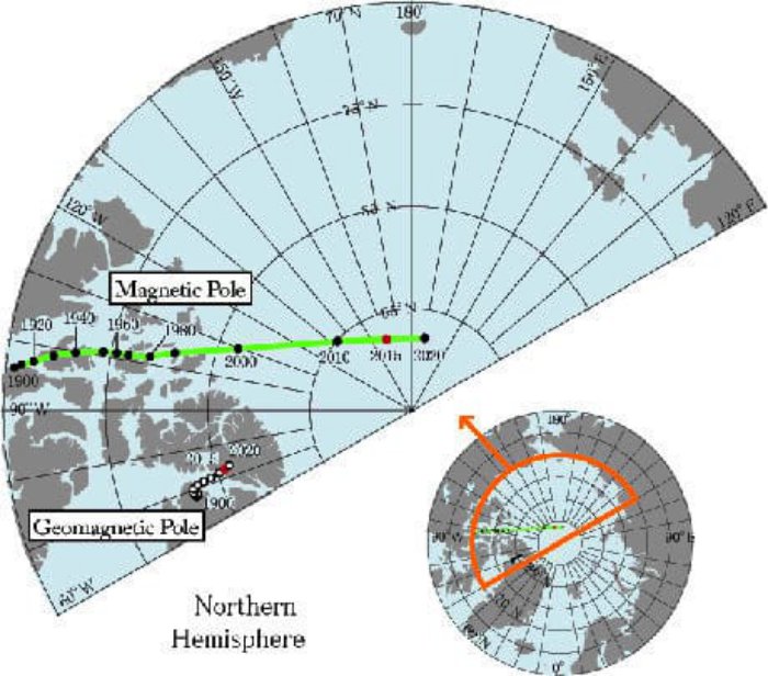 Gli strani spostamenti del Polo Nord del campo magnetico terrestre