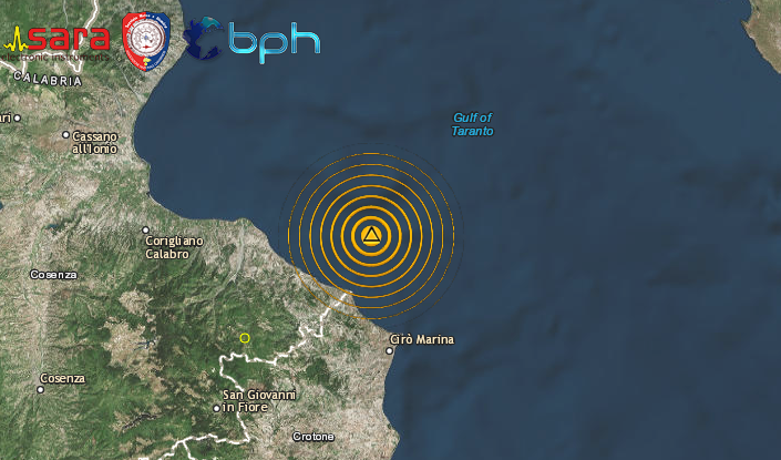 SCOSSA DI TERREMOTO DI Ml 3.1 NELLA NOTTE AL LARGO DELLA COSTA IONICA CALABRESE, IN PROVINCIA DI COSENZA