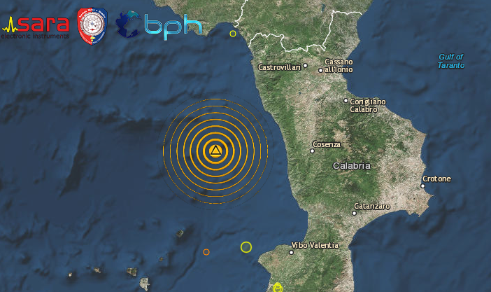 Una scossa di terremoto di magnitudo 3.6 è avvenuta alle ore 12:20:33 italiane nel Mar Tirreno, al largo della costa calabrese Cosentina, con ipocentro in mare alla profondità di 282 km. Questa tipologia di eventi, con elevata profondità ipocentrale e magnitudo non rilevante, non viene avvertita dalla popolazione