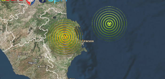 Tre scosse di terremoto sono state registrate nello spazio di pochi minuti nella notte nel Siracusano in Sicilia.L’evento più forte, di magnitudo 3.2 è avvenuto alle ore 02:47:36 italiane con ipocentro alla profondità di soli 5.7 km, che era stato prceduto da un evento di Ml 2.7 registrato alle ore 02:45:02 con ipocentro alla profondità di 5,1 km. Il terzo evento, di Ml 2.7, è stato registrato al largo della costa siracusana di Augusta ed è avvenuto alle ore 02:49:11 con ipocentro alla profondità di 31,1 km.
