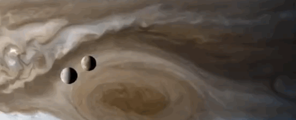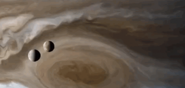 Usando le fotografie del flyby di Cassini su Giove e le sue lune, l’impiegato della NASA Kevin M. Gill ha creato una gif assolutamente straordinaria, che ha pubblicato a settembre 2018.