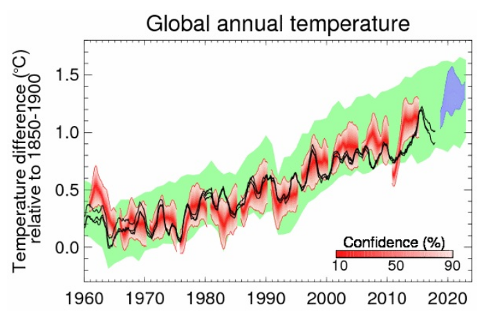 Adam Scaife, responsabile delle previsioni a lungo termine del Met Office, ha ricordato che «Il 2015 è stato il primo anno in cui le temperature superficiali medie annuali globali hanno raggiunto più 1,0° C rispetto ai livelli preindustriali e i tre anni seguenti sono rimasti tutti vicini a questo livello. Si prevede che, tra oggi e il 2023, la temperatura media globale rimarrà elevata, rendendo potenzialmente il decennio dal 2014 il più caldo in oltre 150 anni di dati».