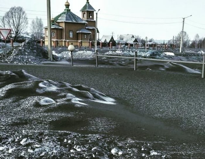 Nuovo episodio di neve nera in una regione carbonifera della Siberia in Russia