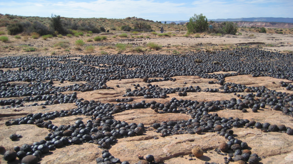 Queste concrezioni di ferro hanno dimensioni che variano da due a dieci centimetri, con eccezioni anche decisamente più grandi. Non tutte sono perfettamente sferiche, ma nella maggior parte dei casi sembrano delle biglie con al loro interno un cuore di arenaria navajo, la sabbia rossa che da 180 a 190 milioni di anni fa ricopriva Utah, Arizona, Colorado, Wyoming, Idaho, Nevada e New Mexico. A fare da «scudo», e a conferire il colore nero, uno strato molto sottile di ematite, minerale del ferro.