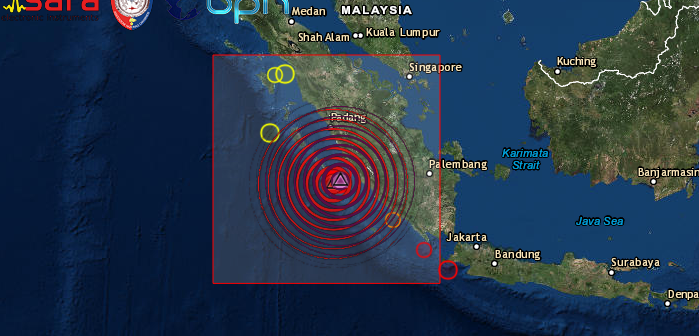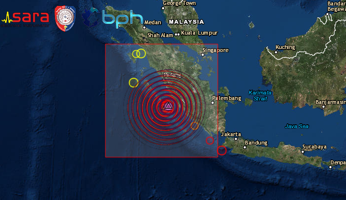 L’epicentro delle scosse è stato localizzato in mare, 168km WSW della località di Sungaipenuh
