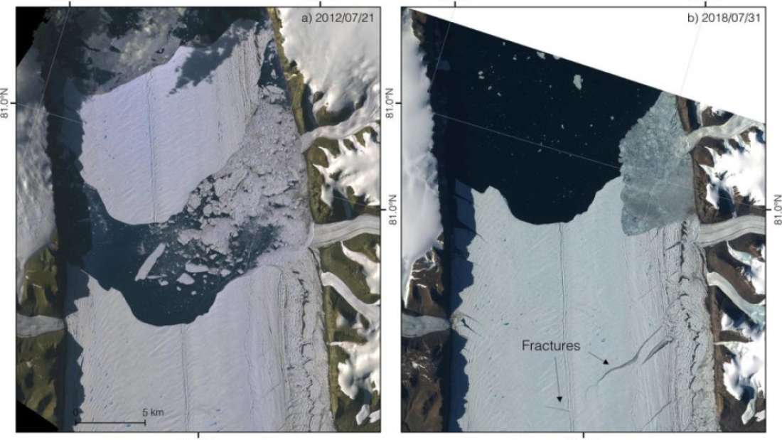 Detto questo,  uno studio del 2013 condotto su Nature ha  scoperto che il cambiamento climatico potrebbe causare a Petermann, insieme ad altri ghiacciai della Groenlandia, un forte disgelo e contribuire all’innalzamento del livello del mare.