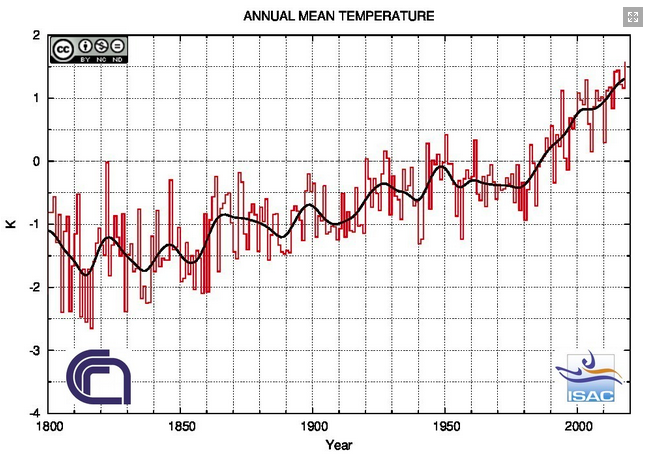 A rispondere sono i dati raccolti dall’Istituto di scienze dell’atmosfera e del clima (Isac) del Consiglio nazionale delle ricerche (Cnr) in collaborazione con l’Università di Milano (Unimi), e pubblicati oggi dal Sole 24 Ore all’interno del suo Indice del clima: «Rispetto all’anno 1800 l’Italia oggi è più calda di 2,3 gradi in media», con un’impennata che «si concentra perlopiù dopo il 1980».