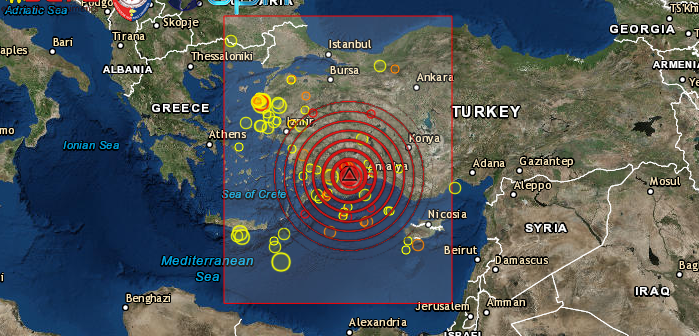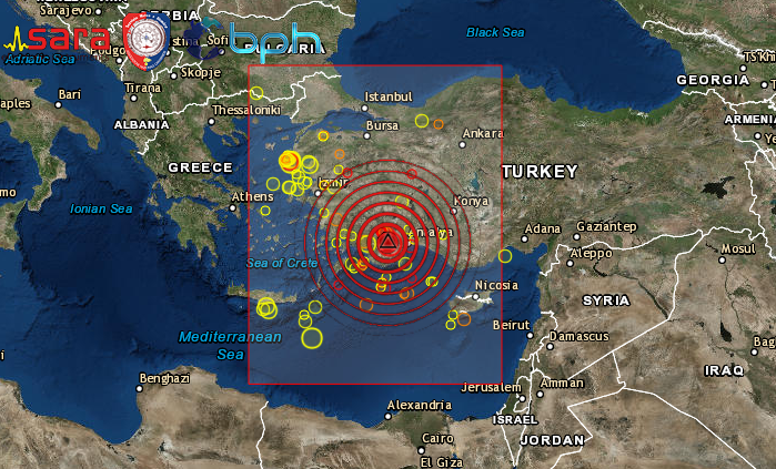 Una forte scossa di terremoto di Mw 5.8 ha colpito la zona a nord-ovest di Antalya in Turchia. Il sisma e’ stato registrato alle ore 07:34:28 ora italiana, con ipocentro a  circa10 km di profondità.