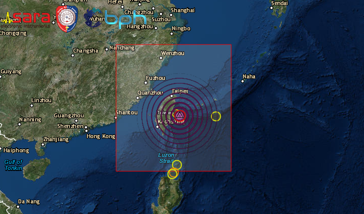 L’epicentro è stato in prossimità della costa occidentale, 13km a NNE della città di Hualian, in una zona molto popolata. Potrebbero esserci danni