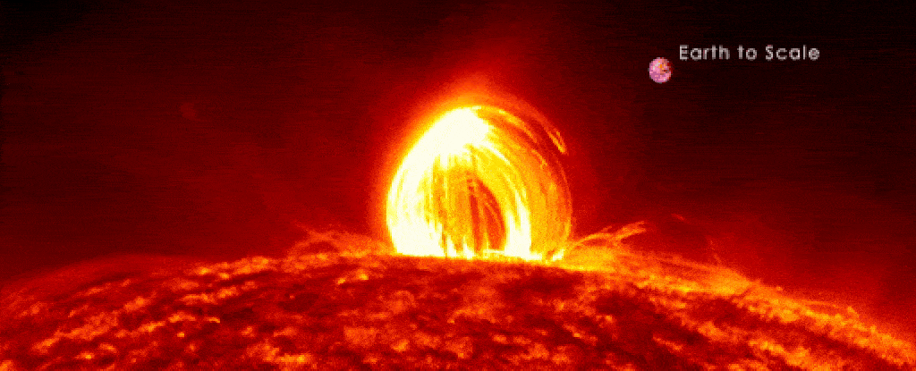 Quando questo plasma si raffredda mentre si allontana dal Sole, forma una sorta di arco di pioggia infuocato, condensando e quindi scendendo nuovamente nella fotosfera lungo i percorsi di queste tracce magnetiche invisibili.