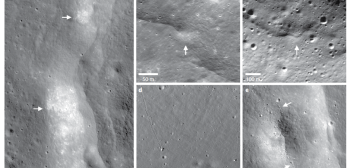 Possibili evidenze di recenti attività sismiche in prossimità di faglie posizionate vicino a lunamoti poco profondi. Crediti: Nature Geoscience, Lroc Nac.