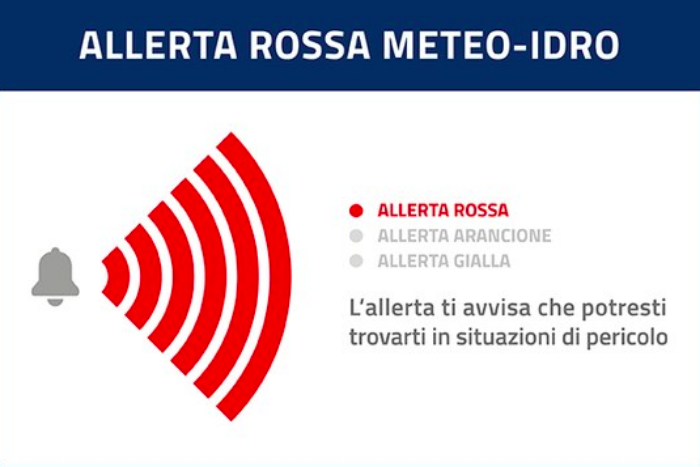 Per allerta rossa, come potrete trovare su tutti i siti di protezione civile regionale d’Italia, si intende che, nel periodo indicato dall’allerta stessa, sulla zona indicata si avrà un livello di elevata criticità con fenomeni meteo “diffusi, molto intensi e persistenti”.
